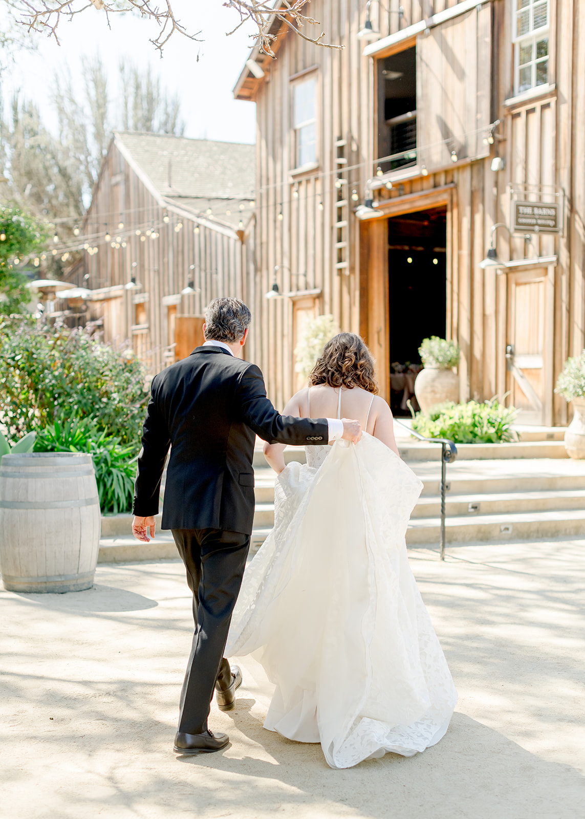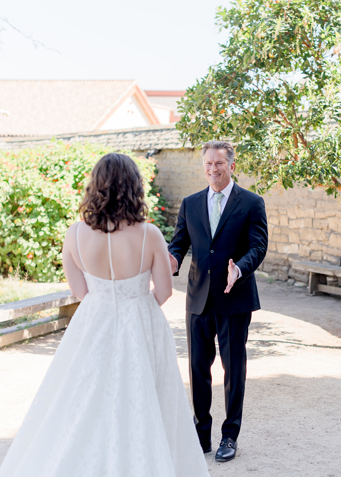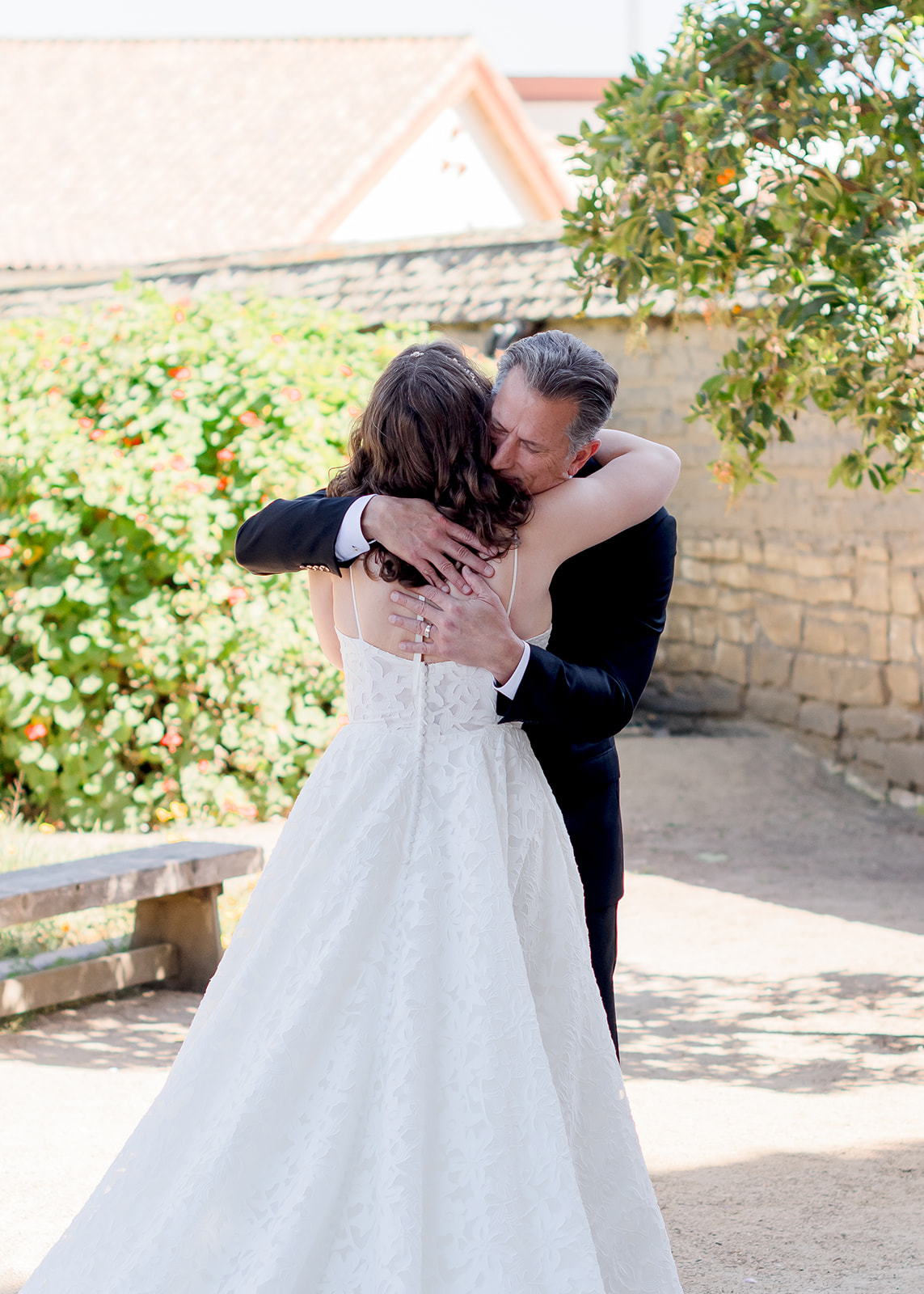Before the ceremony, Lauren shared a first look with her dad. It was emotional and filled with joy. We did this first look down at the lower garden of The Barns in Monterey. They spent a few moments together. Honestly, I love when the couple do first looks with their families and wedding party – because it is a great way to create some special moments before the ceremony begins.